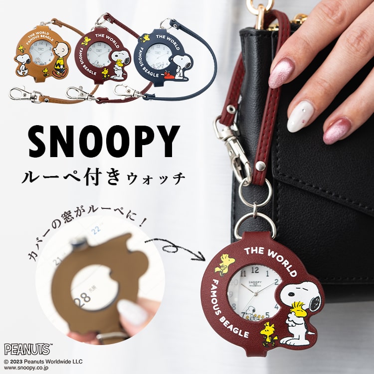 スヌーピーの世界観がたっぷりなルーペ付きハングウォッチ。