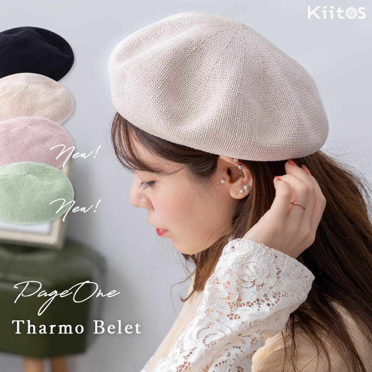 形状記憶する性質を持つサーモ糸を使用した綿混ベレー帽。