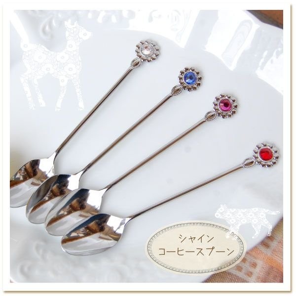 日本製洋食器 スワロフスキー社製ラインストーン使用 オリエンタルな柄 シャイン・コーヒースプーン