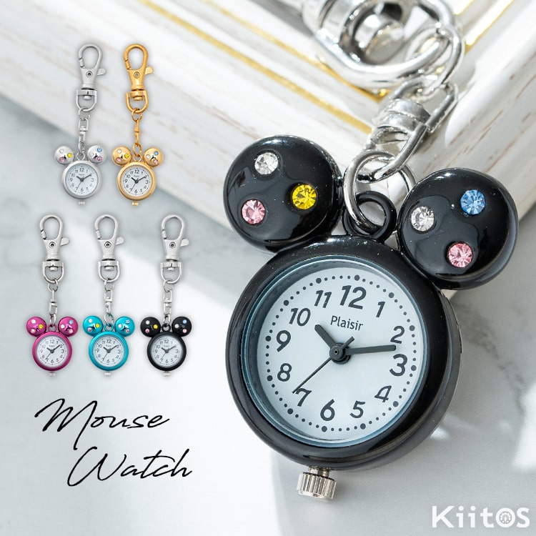 ネズミモチーフのケースが可愛いキーホルダーウォッチ。