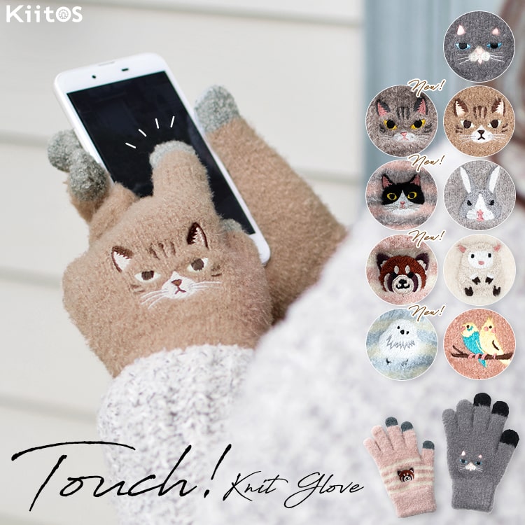 可愛いアニマル刺繍入り♪ふんわりやさしい着け心地のニット手袋です。