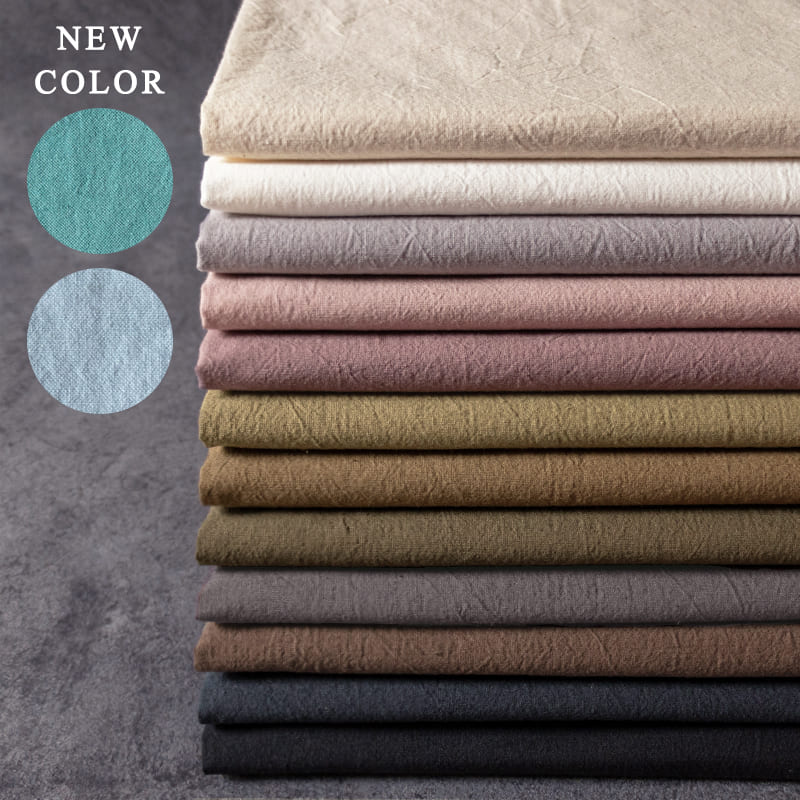生地の生産状況や在庫数の変動により、生地の販売は予告または通知なしにやむなく終了してしまう場合もございます。予めご了承ください。 - 生地サンプルの製造のタイミングと、生地販売の現物とでは生地の製造ロットの違い等により、質感や風合い、色味に多少の差異が生じる場合があります。予めご了承ください。