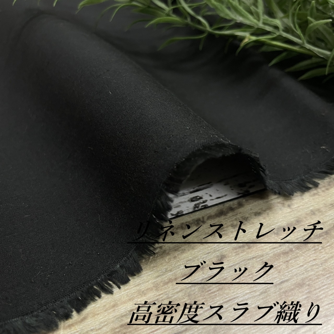 リネン ストレッチ 無地 生地 布 50cm単位で延長可能 スラブ織り ブラック 中厚手 黒 布地専門店 kijiya ワンピース 洋服 /q1