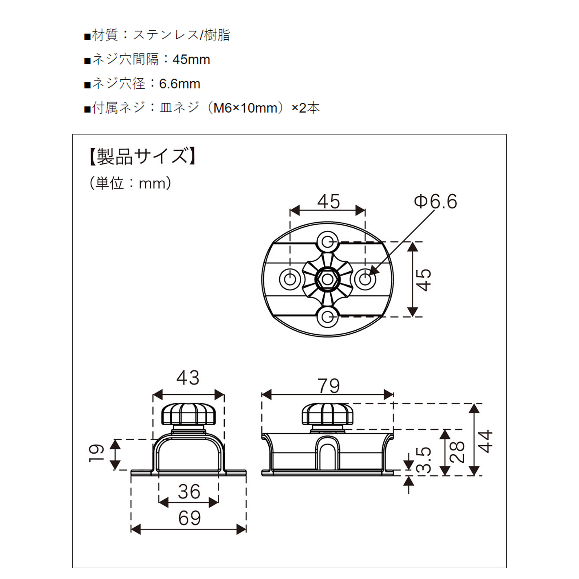 BMO■レールスライドベース(ノブセット付)20C0091 スペアパーツ レンタルボート 釣り フィッシング 機械屋