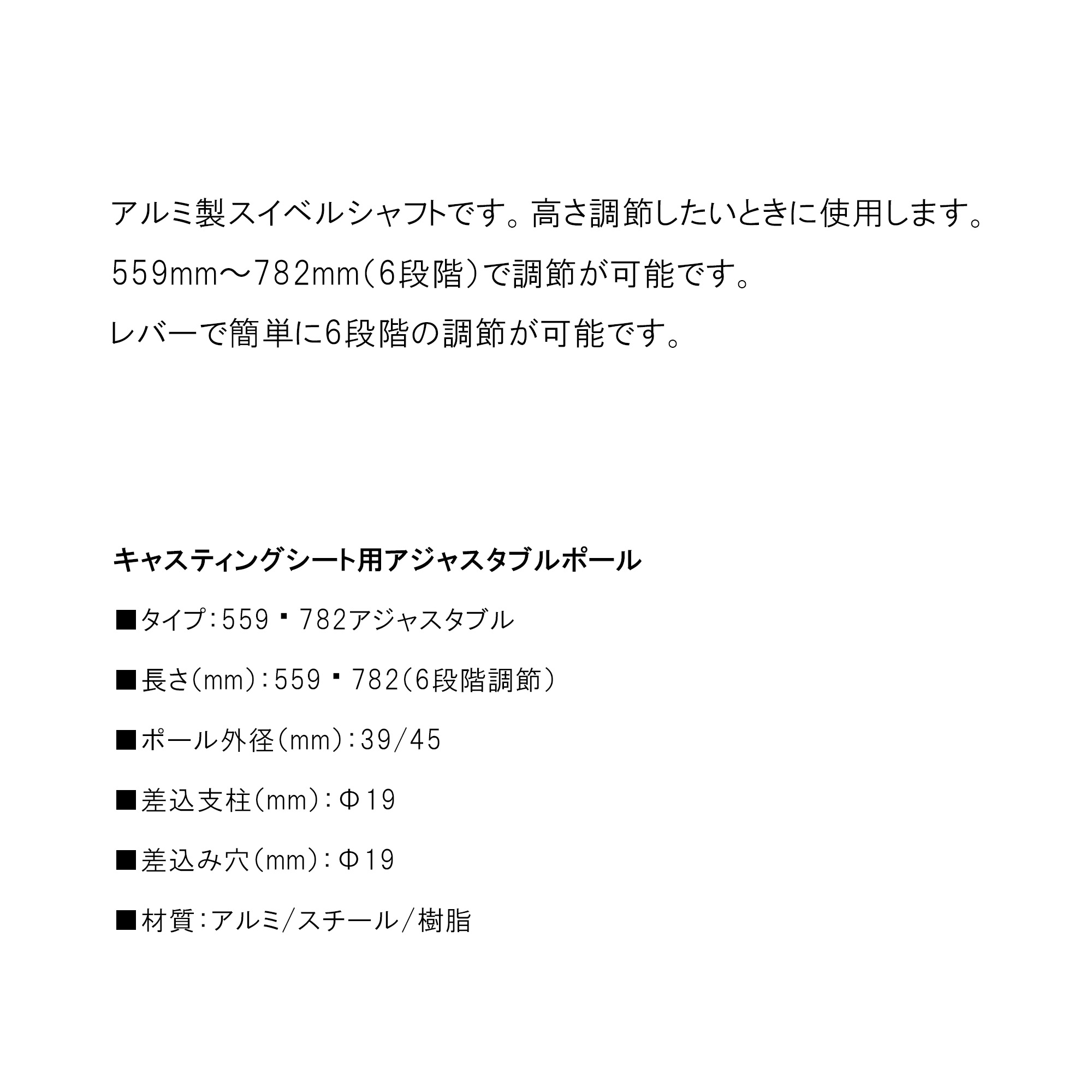 キャスティングシート用アジャスタブルポール