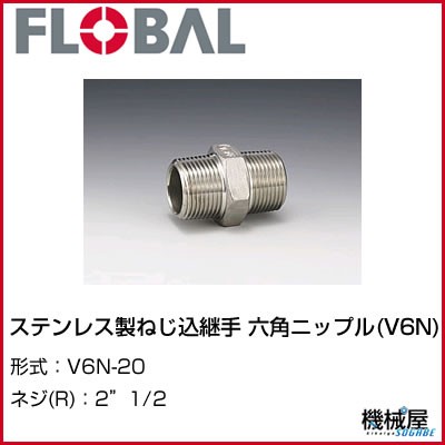 FLOBAL / ステンレス製ねじ込継手 六角ニップル(V6N) / V6N-20 / 2"1/2 / 04101010