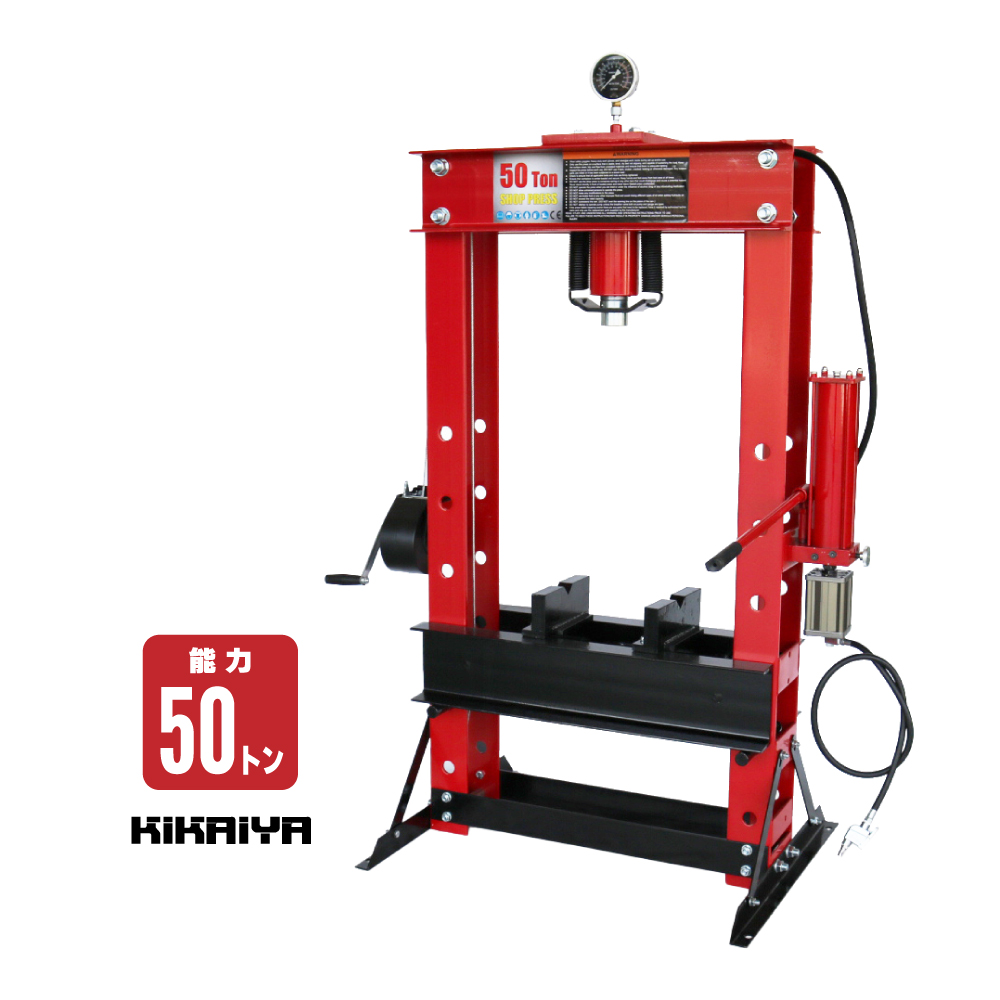 油圧プレス 50トン エアー手動兼用 メーター付 門型プレス機 6ヶ月保証 KIKAIYA