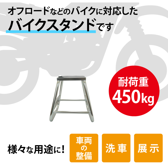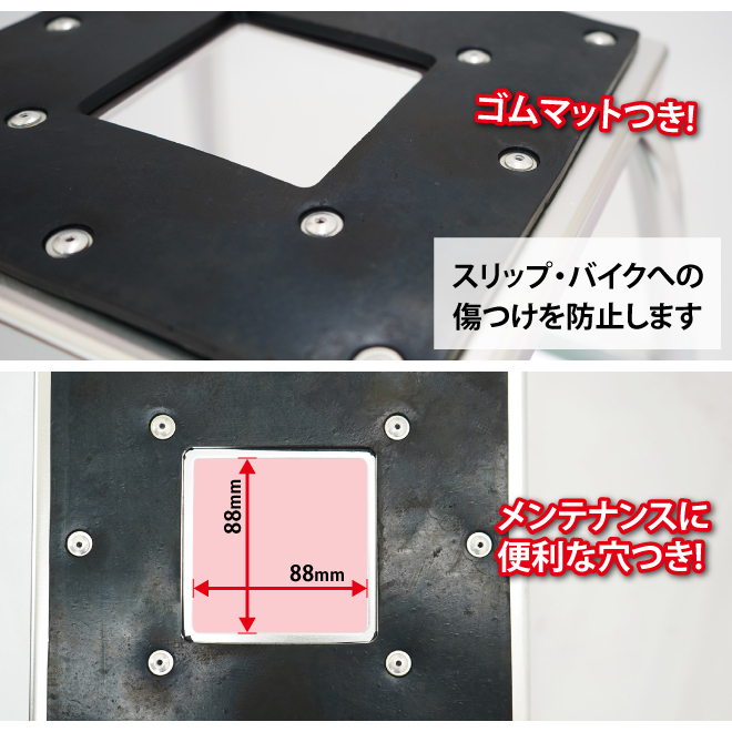 ※必ず水平な場所で使用してください ※バイクを天板に乗せる際は安全のため二人以上で作業されることを推奨します |