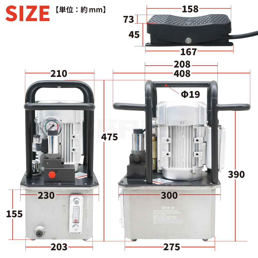 | オイルタンク容量 | 8リットル(作動油:ISO VG15〜46)動作温度:-5〜80℃ |