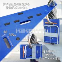 【TPR低騒音キャスターの特徴】 ・適度な弾力性があり、摩耗に強く、転がり抵抗が少ない ・耐油性/耐摩耗性に優れ床面を汚さない ・床に車輪跡がつきません ※故障の原因になるため水気のある場所で使用しないでください ★積載能力が150kgのタイプも販売しております 「折りたたみ 静音台車 150kg ハンドブレーキ付き」(FD150-HB) |