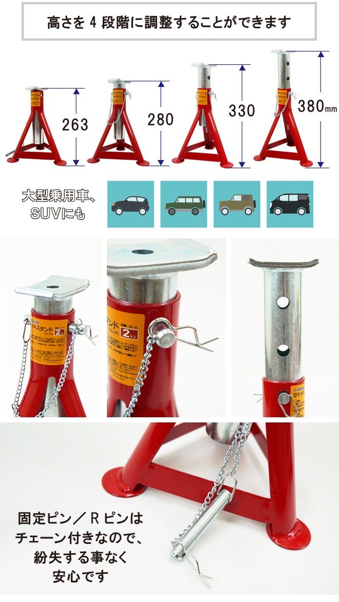 | 高さ調整 | 4段階(263/280/330/380mm) ※アダプターは含みません |