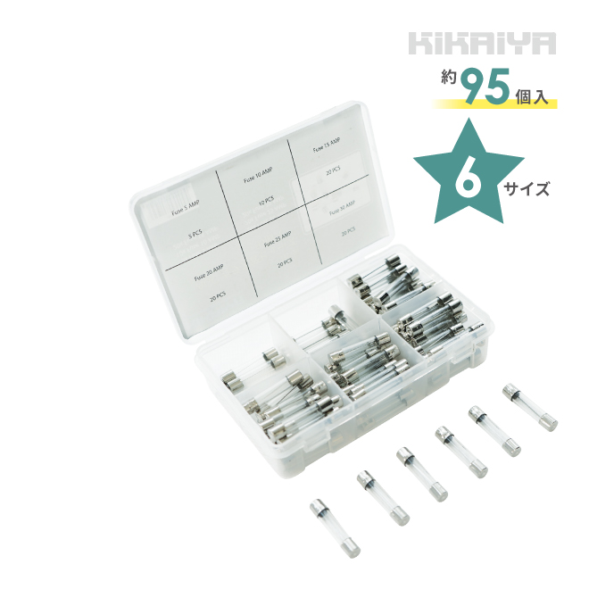 AGCガラス管ヒューズ セット 約95個入 6サイズ 収納ケース付 ヒューズ AGC ガラス管 250V KIKAIYA