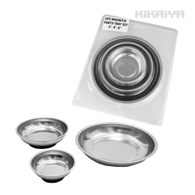 マグネットパーツトレー 大・中・小 各2個 計6個セット φ77/107/149mm 丸形マグネットトレー 部品皿 ツールホルダー 磁石 強力 KIKAIYA