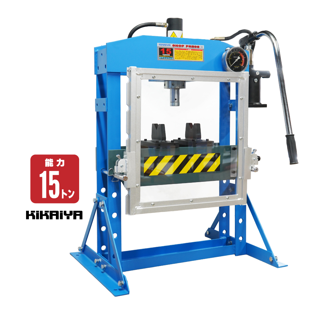 油圧プレス 15トン 低床 卓上 クリアガード 手動 メーター付 ロングストローク 門型プレス機 6ヶ月保証 KIKAIYA