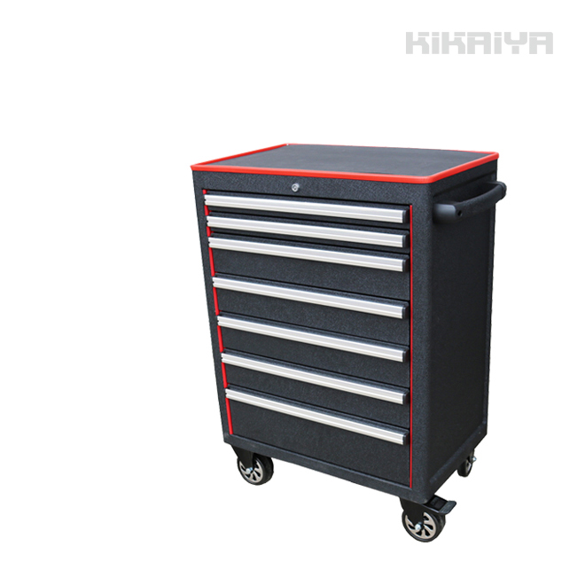 ローラーキャビネット7段 リンクル塗装 ブラック×レッド ツートン 工具箱 艶なし ツールキャビネット KIKAIYA