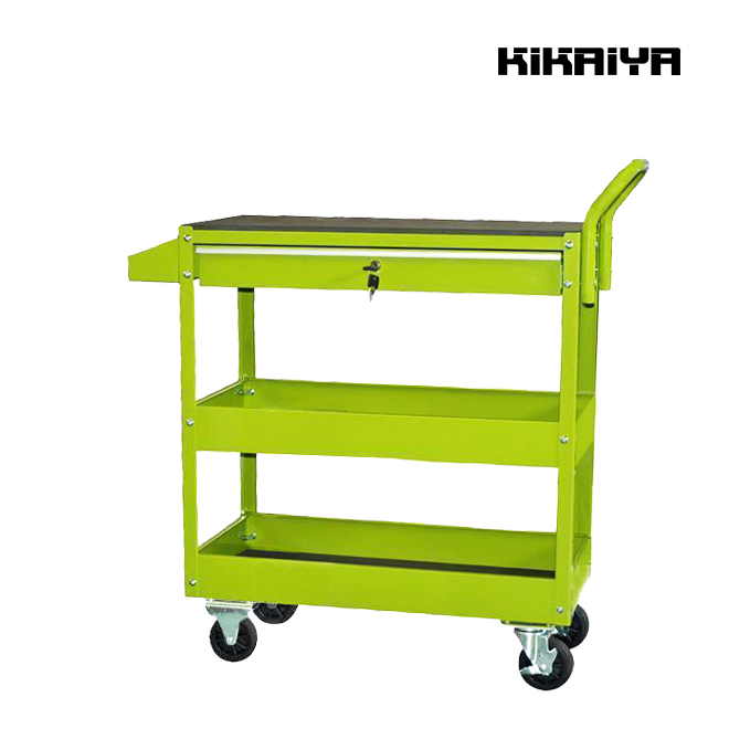 ツールワゴン 3段 キャスター付き ライトグリーン ツールカートDX 引き出し スプレー缶ドライバー兼用ホルダー付 KIKAIYA