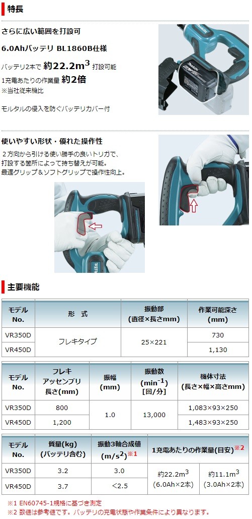 マキタ 充電式コンクリートバイブレーター VR350DZ