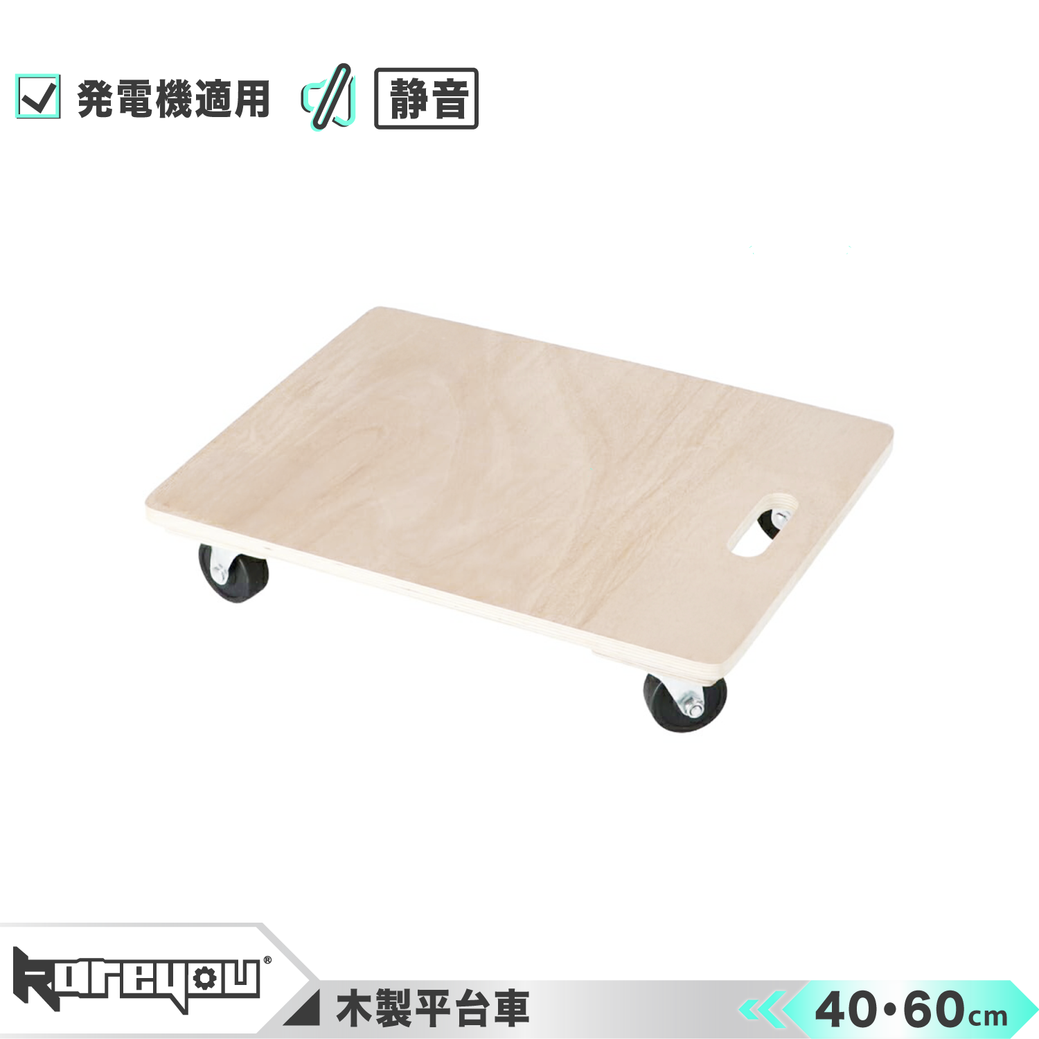検索用語:木製平台車 発電機適用 キャスター台車 40×60cm 四輪自在キャスター&全輪ストッパー付き 耐荷重強化 静音タイプ