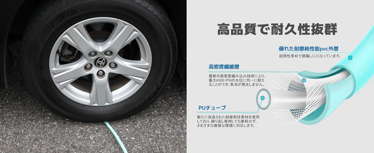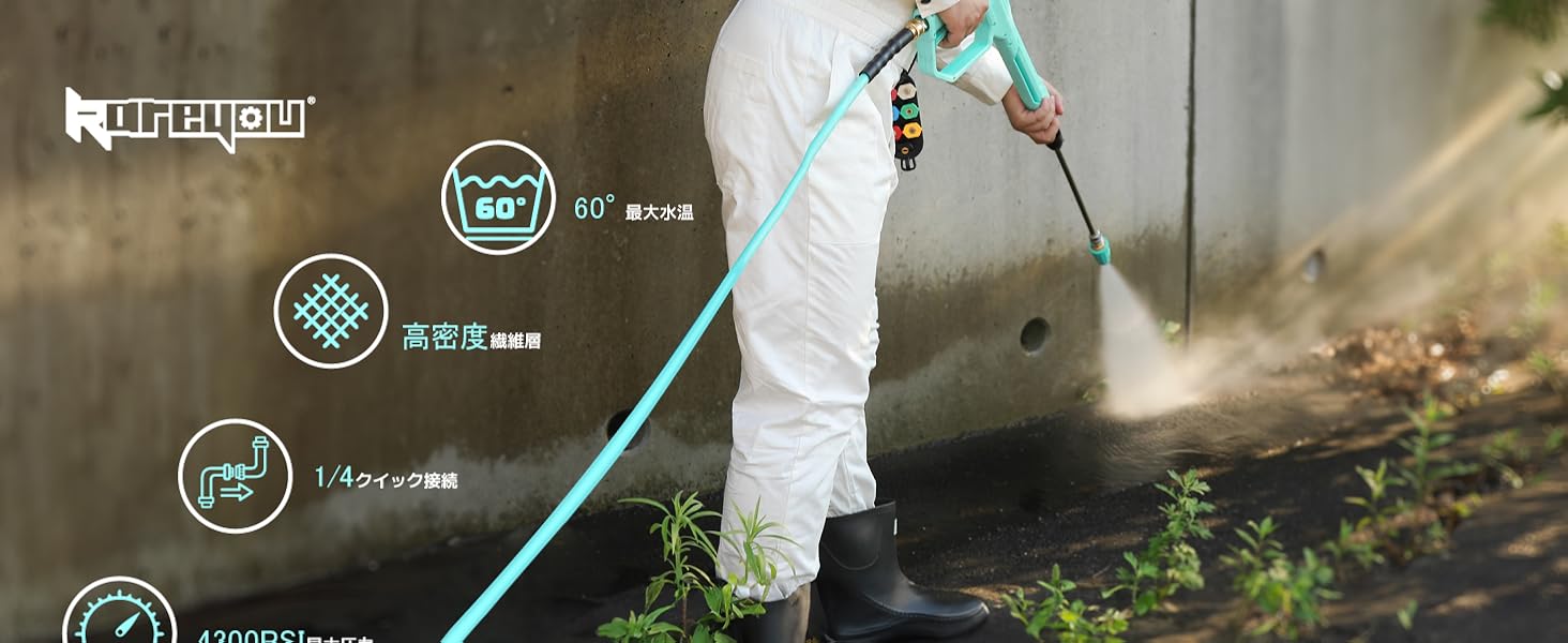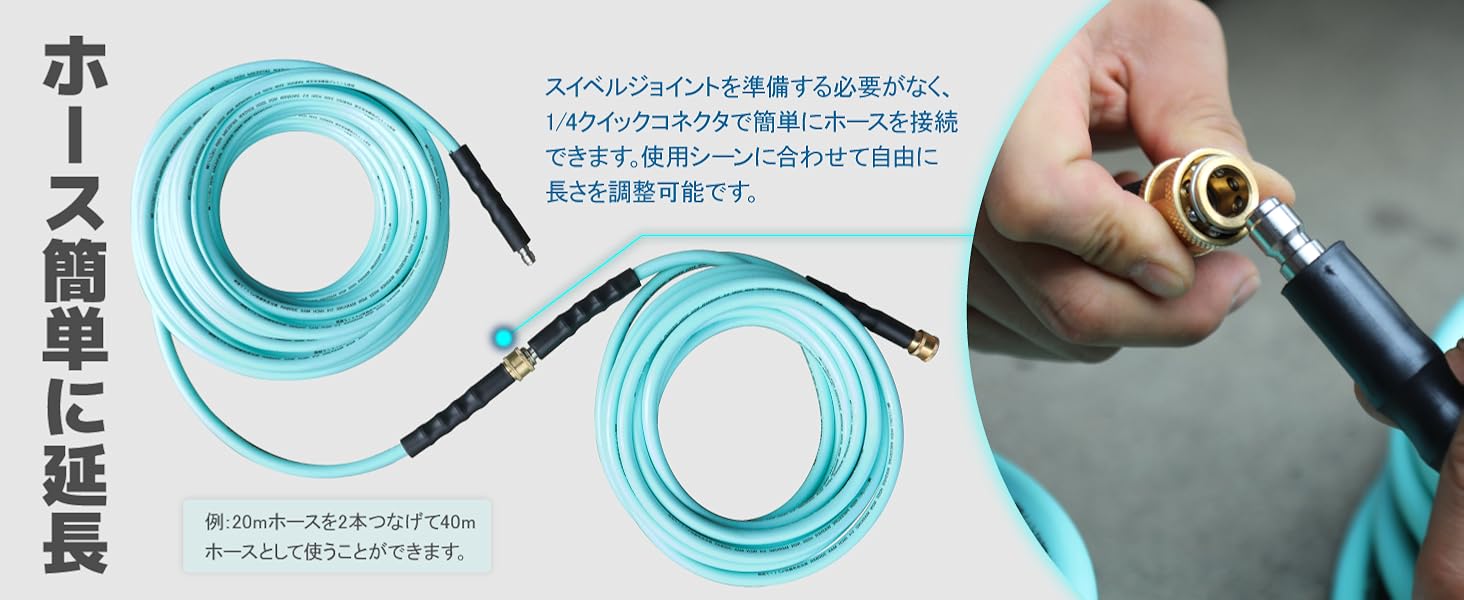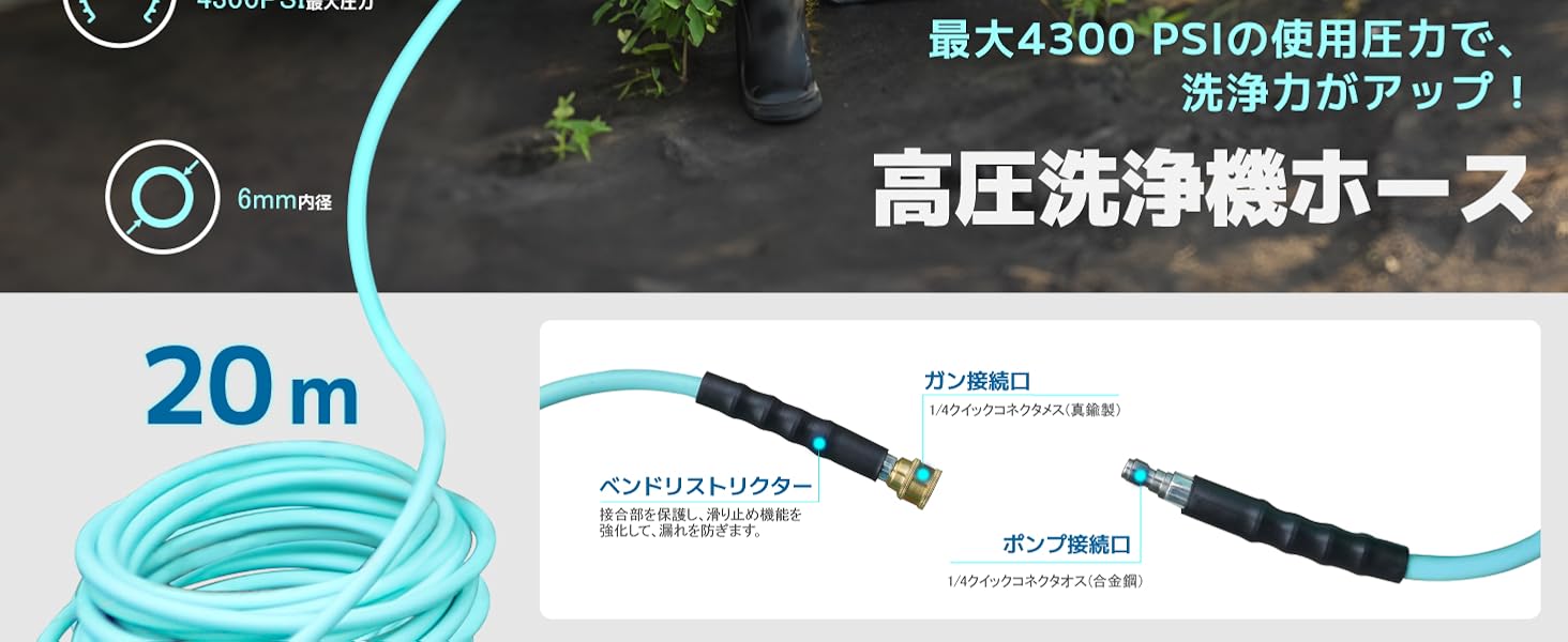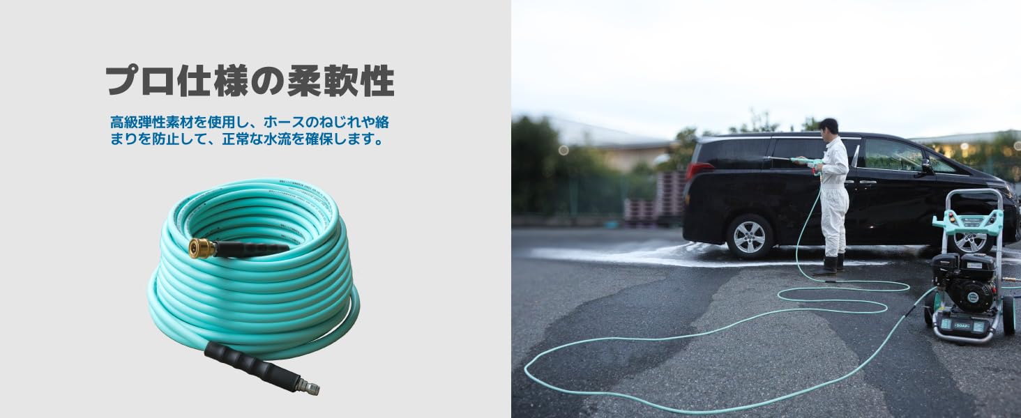 『重要な注意点』これは高圧洗浄ホースであり、ガーデンホースではありません。高圧洗浄機専用に設計されています。
