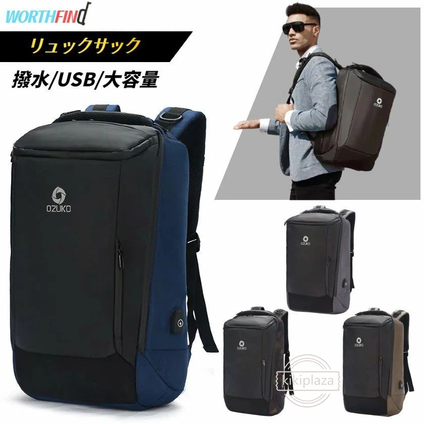 OZUKO リュックサック メンズ バックパック pcリュック USB充電 リュックパソコン キャリングバッグ 撥水加工 pc収納 通勤リュック パソコンリュック メンズ 大