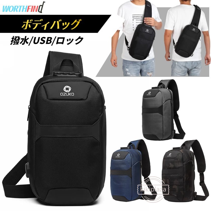 OZUKO ボディバッグ メンズ ショルダーバッグ USB充電 ロック付き 型崩れしない 超軽量 大容量 多機能 2way ボディーバッグ 斜めがけ 肩掛け 防犯 撥水 おしゃれ
