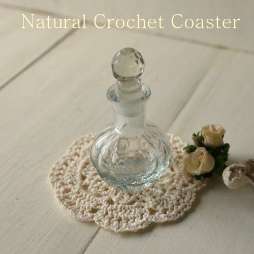 手編み クロシェ コットンコースター花モチーフ 4カラー(ホワイト・クリーム・グレー・薄ベージュ)