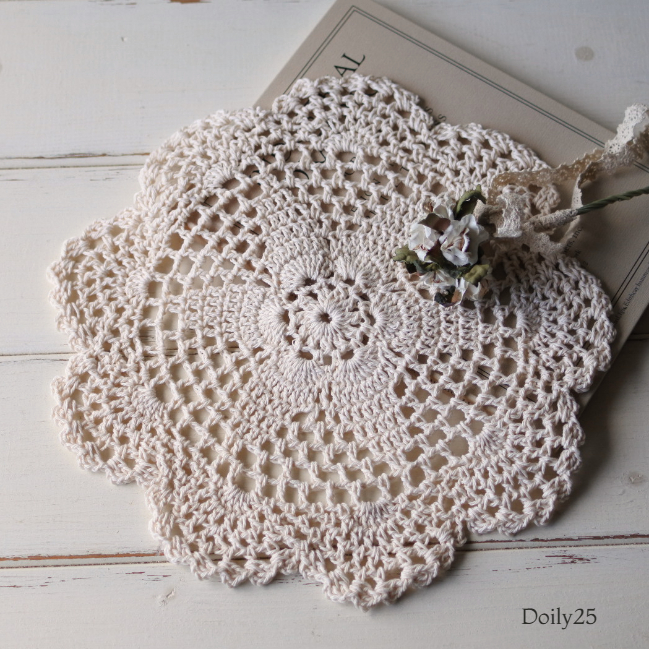 ナチュラルドイリー25 ライトベージュのレース編みドイリー