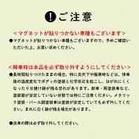 | 注意事項 | ・掲載商品の色等、撮影・モニタ表示等により実際の商品とは異なる場合がございます。 また、デザインが写真と多少異なる場合がございますのでご了承ください。 ・安全運転の妨げになるようなご使用方法はお避けください。 ・本品への加工は行わないでください。 ・取付面の温度が80度以上のときには、ご使用にならないでください。変質したり磁力が低下して外れやすくなることがあります。また、ボンネットや夏期の車内保管等では充分にご注意ください。 ・降車時は本品を必ず取り外すようにしてください。長時間貼りつけたままの場合、特に炎天下や極寒時などは、停車後の温度変化でボディの塗装と化学反応を起こし、はがれにくくなったり日焼け後が残る恐れがあります。新車・再塗装車など、塗装面が安定していない状態では特にご注意ください。メタリック塗装・パール調塗装車は塗装が安定していても必ず外してください。まれに白く跡が残る場合があります。 ・洗車の際は必ず取り外してください。 ・雨の後など水に濡れた場合は、塗装面、マグネットの水分を完全に拭き取ってからご使用ください。 ・キャッシュカード等の磁気の影響を受ける物の近くに置かないでください。また、印刷面に物を置かないでください。 ・法定速度を超えたり激しい衝撃を与えないでください。 ・高温のところに置いたり折り曲げたりしないでください。熱・変形により磁力吸着力が不完全になることがあります。 ・吸着面に破れ・破損・変形が生じた場合にはご使用にならないでください。走行中外れる恐れがあります。 ・本製品は長時間の使用により、変色・退色・硬化・劣化が発生いたします。 予めご了承ください。 ・異常を発見した場合は直ちに使用を中止し、当社までお問い合わせください。 ・万一、製造に起因する品質不良があった場合は、同等の新しい商品とお取り替えいたします。なお、現品がない場合は保証の対象となりませんので予めご了承ください。 ・仕様および外観は改良のため予告なく変更することがあります。 ・本品はあくまでも後続車に安全を知らせるためのマグネットです。本品の注意に従わない場合や、誤った取り付け・ご使用をされた際の事故・故障・破損につきましては責任を負いかねますので、お取り扱いには充分注意し安全運転の上、ご利用くださいますようお願い申し上げます。 ・小さなお子さまの手の届かないところで保管してください。 ・本品を破棄する場合は、各自治体の規則に従ってください。 |