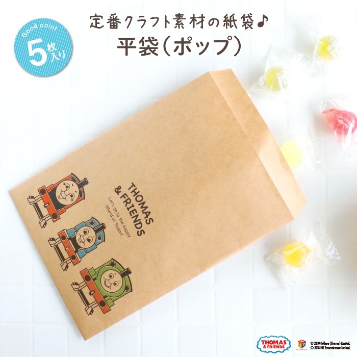 お菓子や写真の小分け袋に、ちょっとしたプレゼントのラッピングにぴったり!クラフトがおしゃれなきかんしゃトーマスのペーパーバッグ。