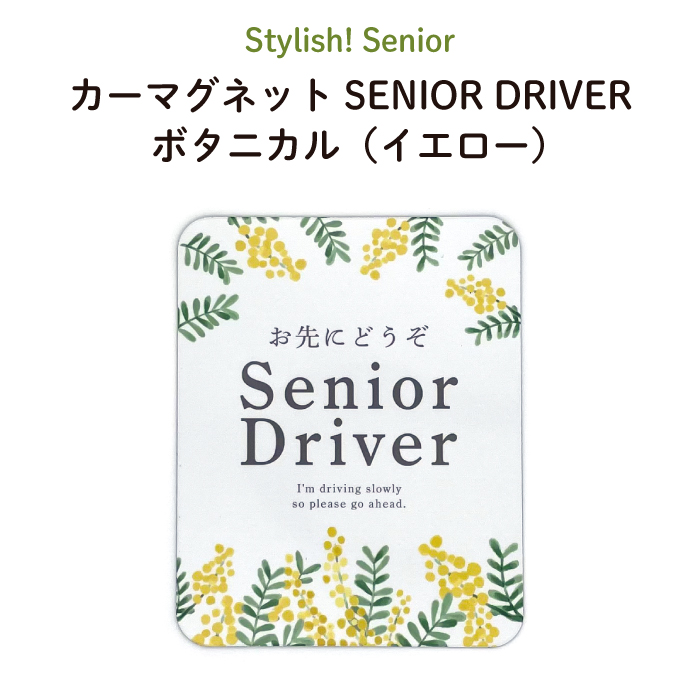 Stylish! Senior(シニア)カーマグネット SENIOR DRIVER ボタニカル 【シンプル おしゃれ 女性 マグネット 車 ステッカー 安全運転 あおり運転防止 高齢者マーク もみじ 四つ葉 おばあちゃん おじいちゃん シニア 取り外し 運転 花柄 日本製 】