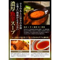 【特製魚辛スープ】畜肉エキス(国内製造)・醤油・砂糖・ラー油・なたね油・食塩・たん白加水分解物・醸造酢・かつおエキス・たまねぎエキス・かつおぶし粉末・さばぶし粉末・唐辛子粉末/調味料(アミノ酸等)・酒精・加工デンプン・着色料(カラメル・カロチノイド)・増粘多糖類・香辛料抽出物