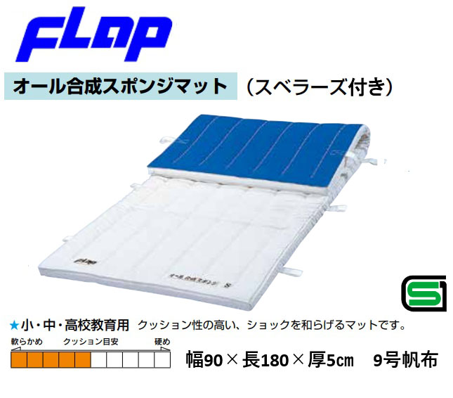 送料無料 FLAP 仲條 体操マット オール合成スポンジマット 90×180×5cm 9号帆布 スベラーズ付F481 法人限定