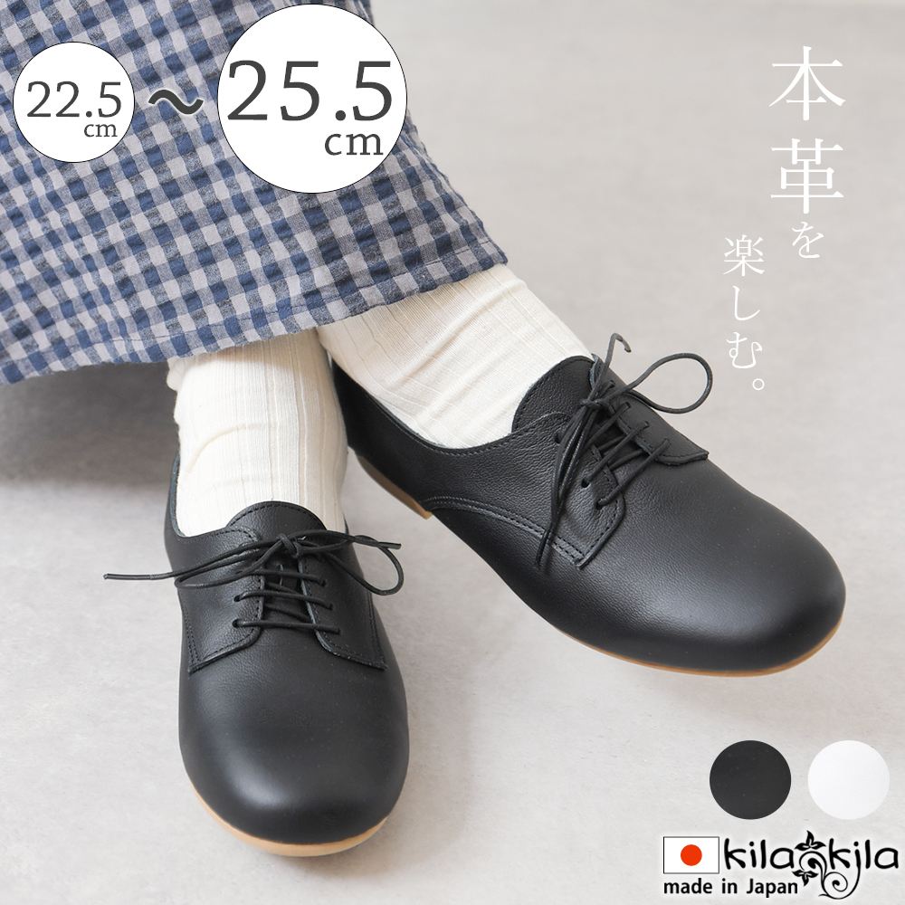 ★ゆとりがある方が好みなので、私は24.5cmを選びます。レースアップが足元の印象を引き締めてくれます。本革なので足当たりも良く、履き心地が良いです。