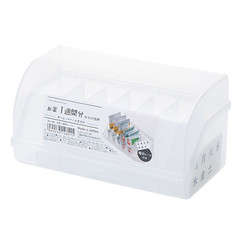 取り出しやすい丸底設計と仕分けに便利なシール付き!1週間分のお薬を仕分けて収納できるボックスです。