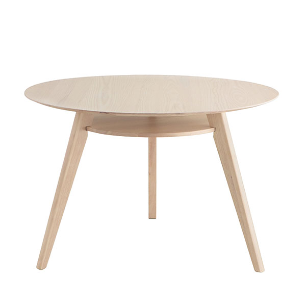 アッシュ材の木目を生かしたホワイト仕上げで、木の存在感抜群のダイニングテーブル。