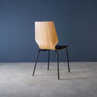 木目調の座面を引き立てるスチール脚がスタイリッシュなデザインチェアです。