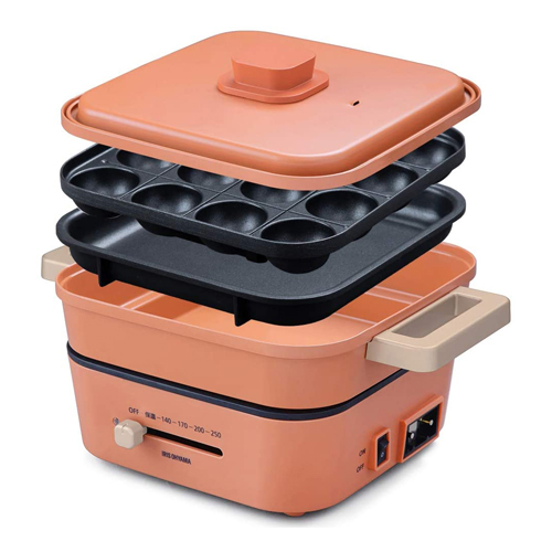 なべを使って煮込み料理をしたり、平面プレートを使ってパエリアを炊いたり、焼き肉をしたり、たこ焼きプレートでたこ焼きまでできる1台で4役の優れものです。