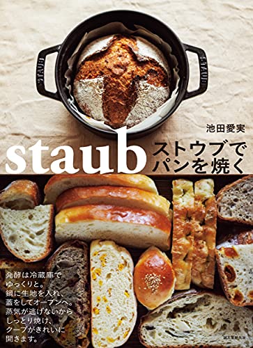ストウブは熱伝導・保温性に優れ、食材をふっくら美味しく仕上げる鋳物ホーロー鍋。 この鍋でパンを焼くことには大きなメリットがあります。 カンパーニュなどの油脂分が少ないハード系パンは、家庭用の電気オーブンではなかなか難しいもの。 原因は蒸気不足とファンです。 これが生地の表面を乾燥させてパンがふくらみきらないのです。 ストウブに入れてふたをして、オーブンで焼くことで、鍋の中でパン自体の持つ水分が蒸気となり、クープが気持ちよく開いて中はしっとり。 味もよく、見た目もかっこいいパンを焼くことができます。 また、ストウブは型としても優秀で、火のあたりが均一。 牛乳やバターを配合した牛乳パンなどもしっとり仕上がり、見た目もかわいらしく、そのまま食卓にのせても映えます。 レシピは一般的なラウンド型18、20、22cmに対応し、浅いソテーパンのブレイザーで作るシナモンロールや、10cmのミニココットのイングリッシュマフィンやハンバーガーバンズなども掲載。 ストウブで焼くパン作りの決定版になる一冊です。 目次 はじめに ストウブでパンを焼く理由 鍋のサイズ選びについて ストウブで焼くパンのQ&