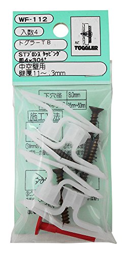 和気産業(Waki Sangyo) トグラー タッピング皿付き TB 中空壁用 石膏ボード 4個入 白 壁厚11~13mm WF-112