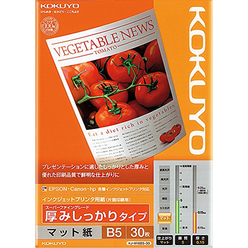 コクヨ(KOKUYO) インクジェットプリンタ用紙 厚口 B5 30枚 KJ-M16B5-30