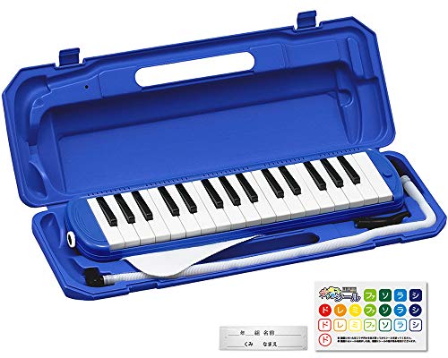 KC キョーリツ 鍵盤ハーモニカ メロディピアノ 32鍵 ブルー P3001-32K/BL (ドレミ表記シール・クロス・お名前シール付き)