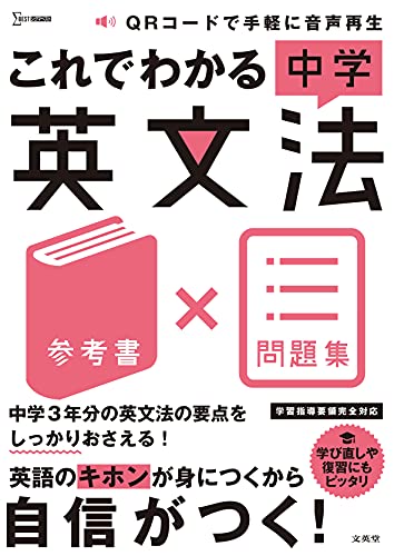 中学英文法の基本的な解説と問題演習が1冊に 新しい学習指導要領に対応しています 【特長1】参考書と問題集がこれ一冊で 解説を読んで理解を深め 要点を覚えたら すぐ問題演習ができるので効果的に学習が進められます。中学英文法の学習がこの一冊で完結できます。復習や学び直しにもおすすめです。 【特長2】基礎から応用までしっかりカバー 「基礎問題」→「実力問題」と段階的にレベルアップできます。さらに複数単元の内容をまとめたチェックテストにはリスニング問題を掲載しています。様々な切り口で問題にチャレンジでき 確実に実力がつきます。 【特長3】QRコードで手軽に音声再生 リスニング問題等の音声がスマホなどで手軽に再生できます。音声は無料リスニングアプリからも手軽にダウンロードしていただけます。