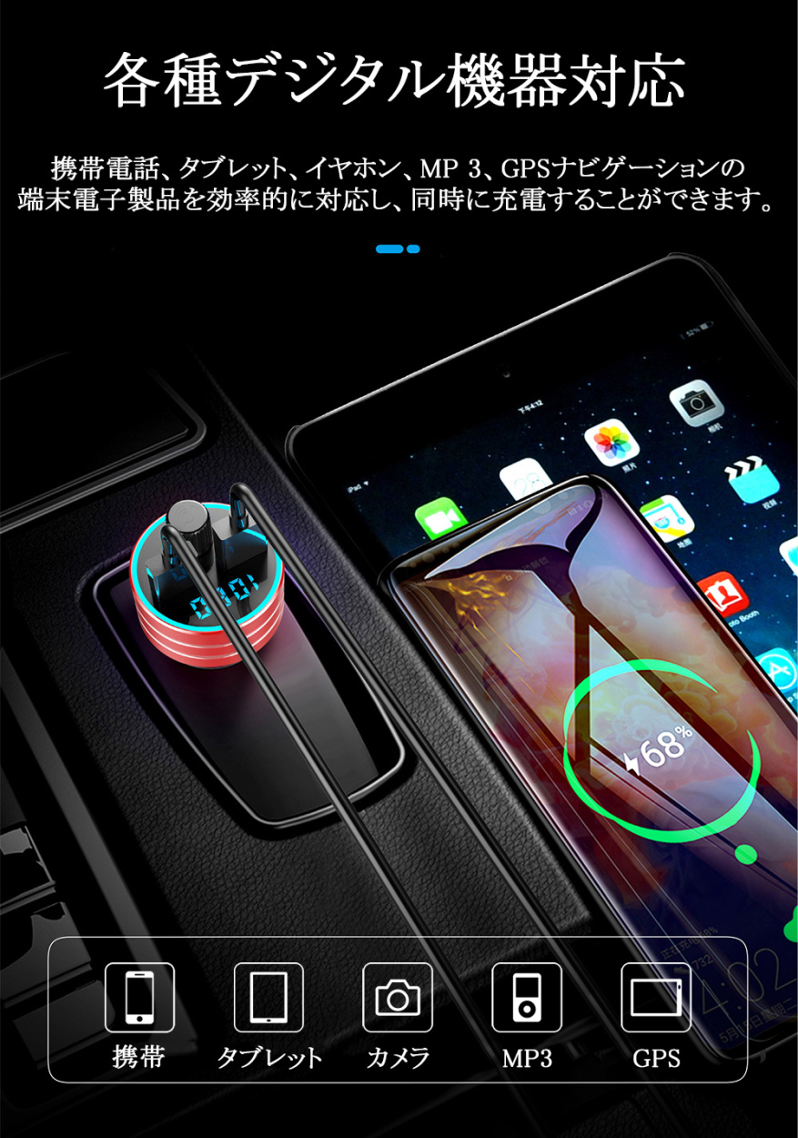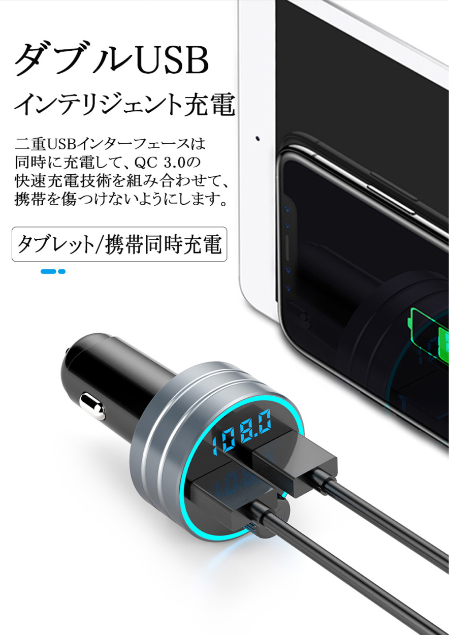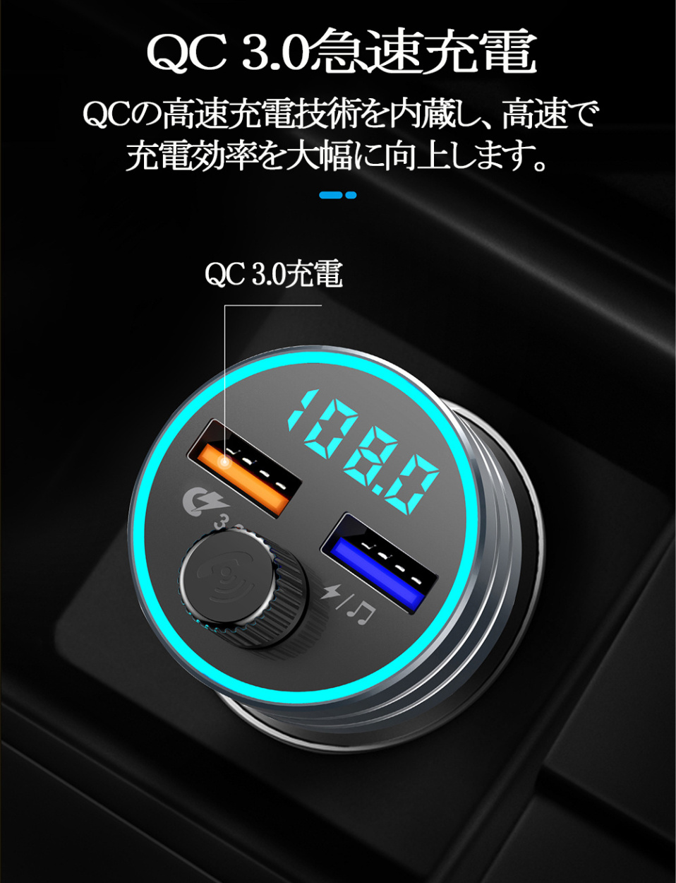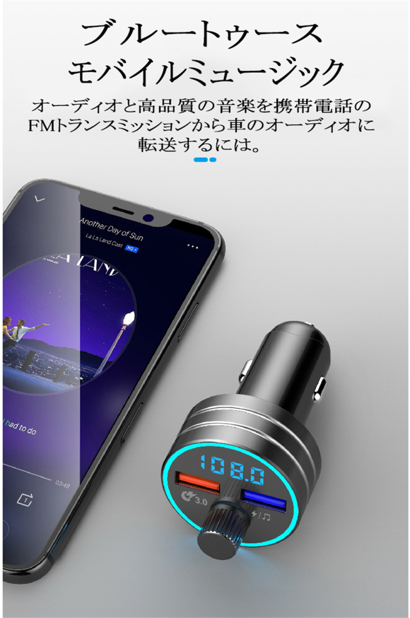 車載 FMトランスミッター BLUETOOTH トランスミッターAUX 多機能 高音質 通話対応 USBメモリ 電源 カーチャージャー シガーソケット