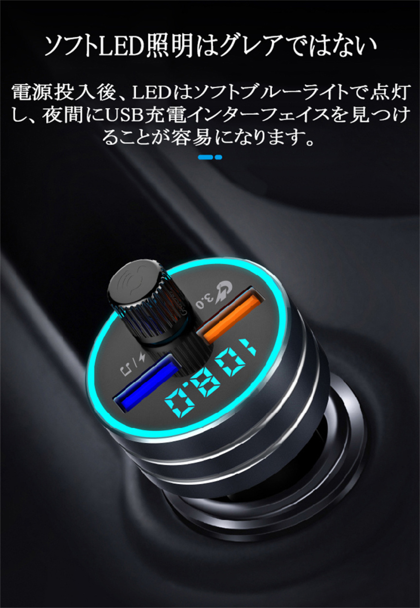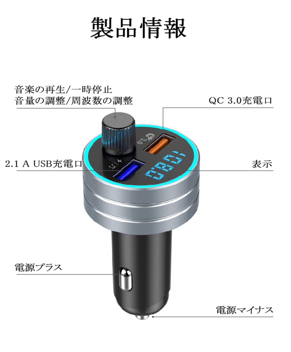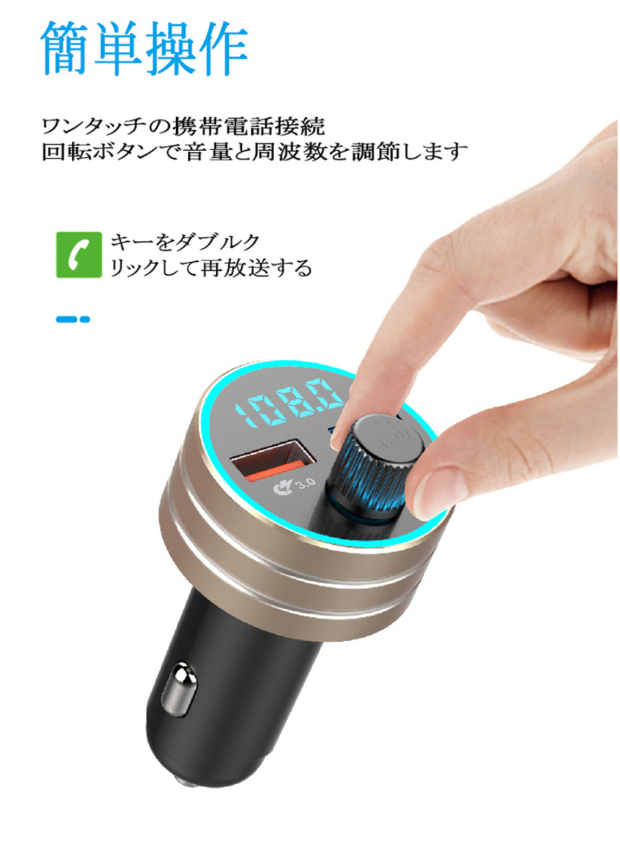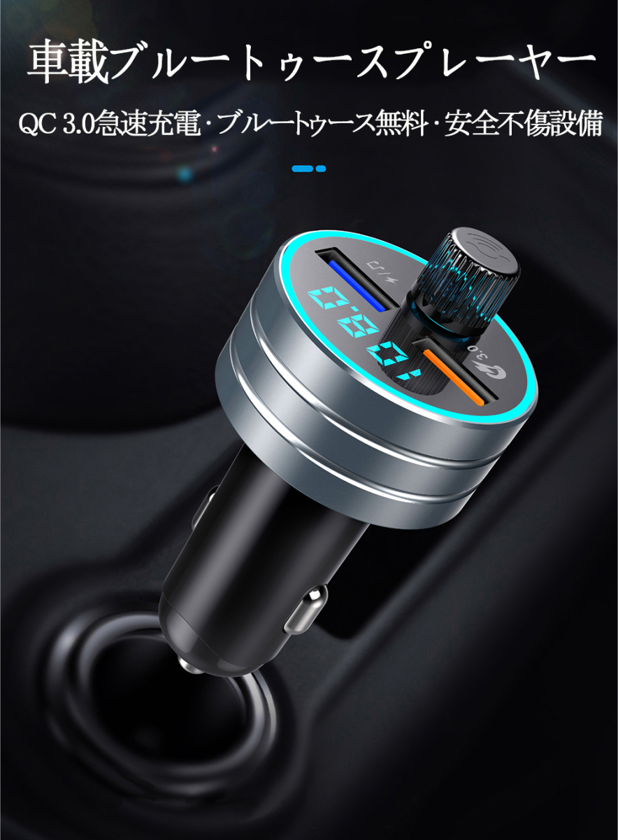 車載 FMトランスミッター BLUETOOTH トランスミッターAUX 多機能 高音質 通話対応 USBメモリ 電源 カーチャージャー シガーソケット