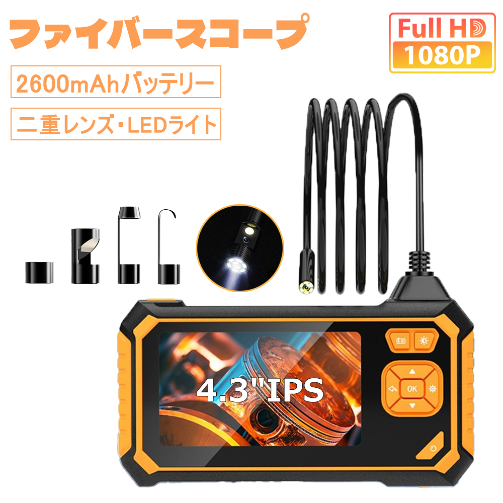 ファイバースコープ 1080P デュアルレンズ 4.3インチIPSモニター搭載 内視鏡カメラ IP67防水 8MMレンズ LEDライト付 自宅メンテナンス 車整備 機械点検 年末掃除