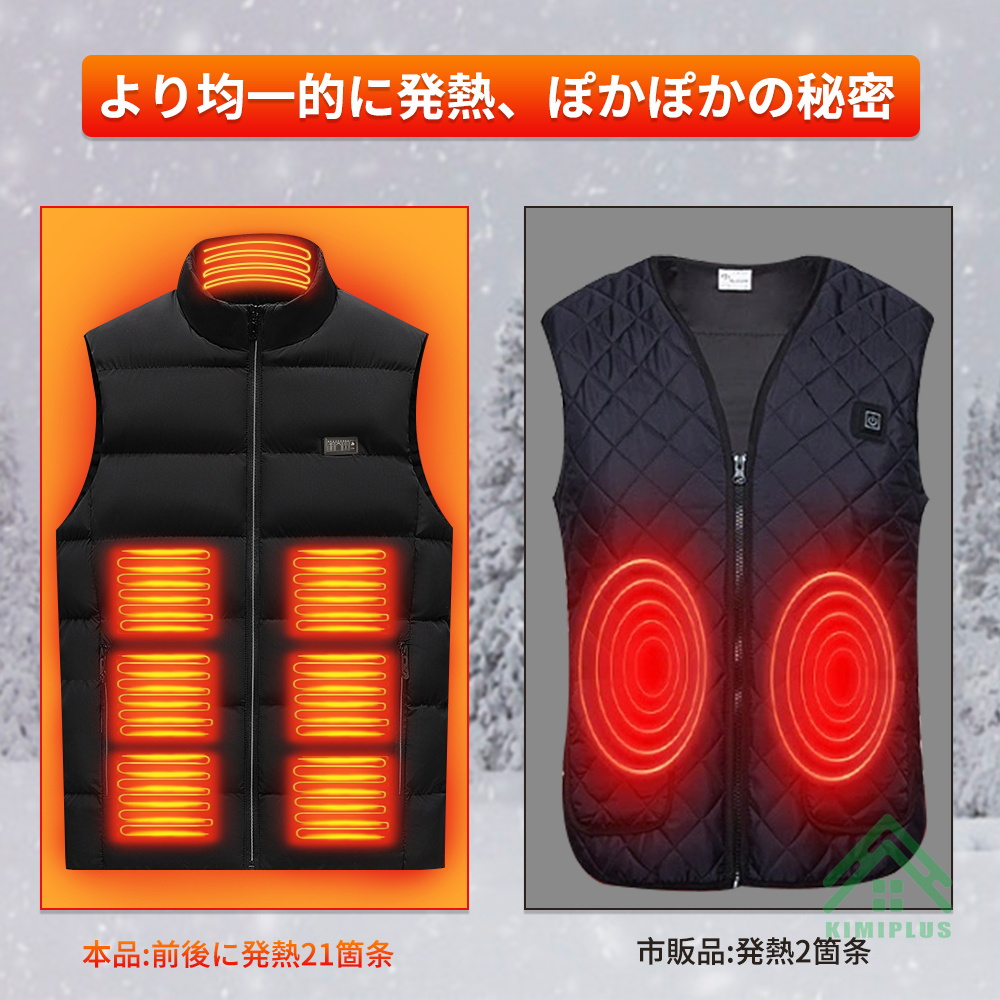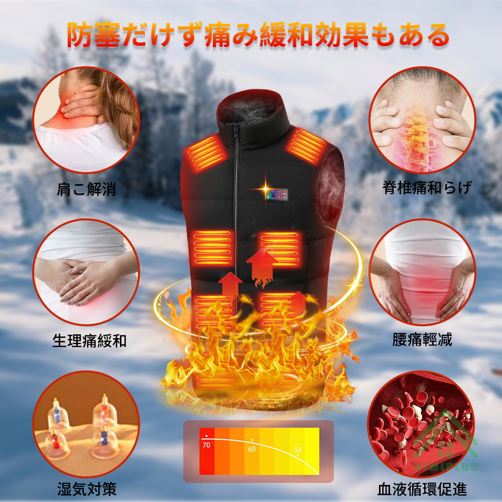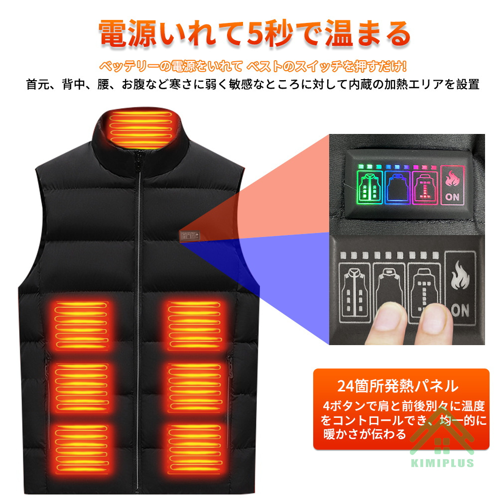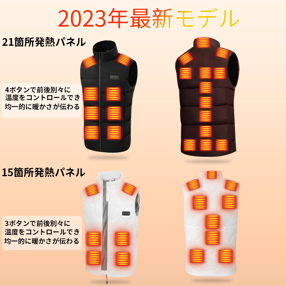 電熱ベスト 日本製 繊維ヒーター ヒーターベスト ヒーター付き ベスト 加熱ベスト 21つヒーター 4つボタンで独立制御 3段階温度調節 レディース メンズ 敬老の日