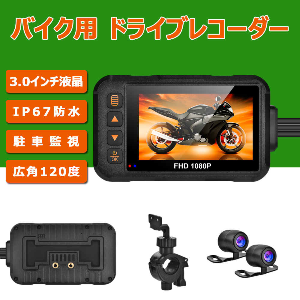 【関連キーワード】バイク用 ドライブレコーダー 防水 前後 ミラー ステッカー 日本製 360度 3インチ液晶 HD録画 常時録画 Gセンサー 音声録音 日本語対応 1年保証 特許技術 完全防水