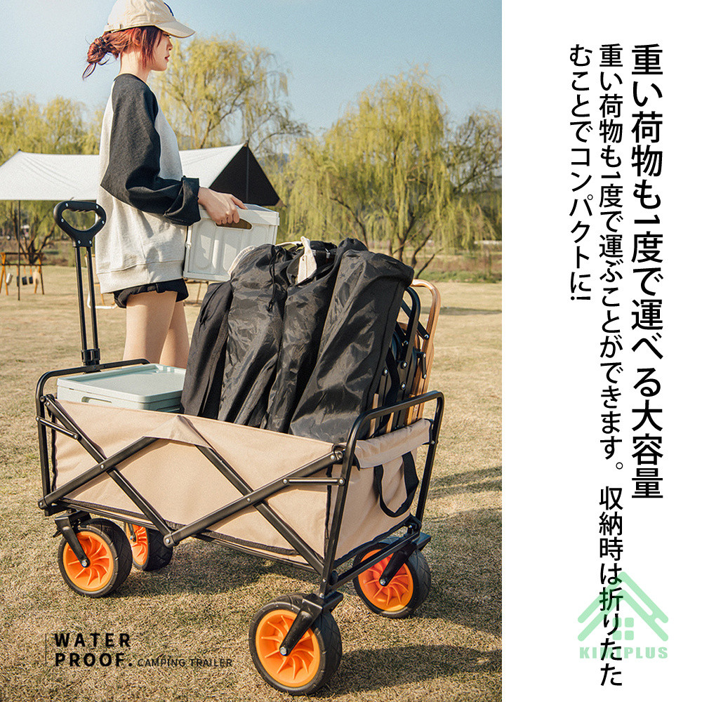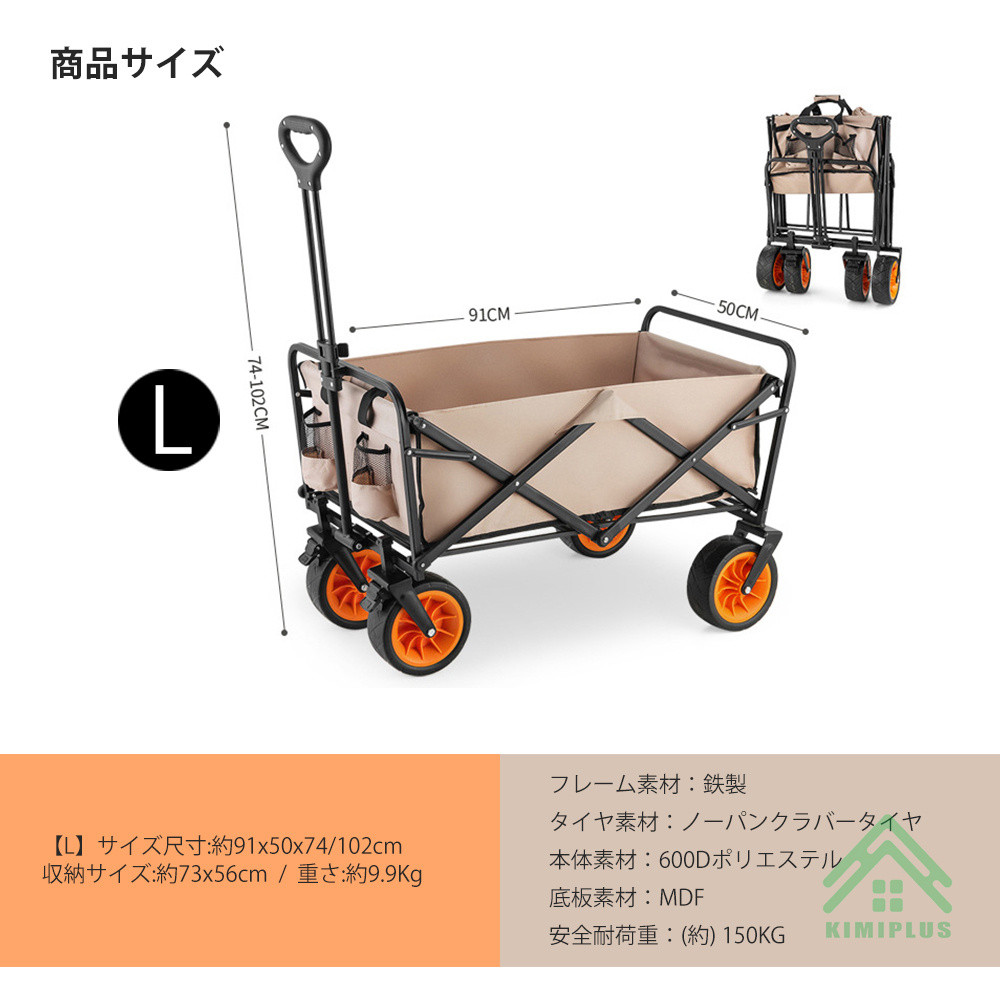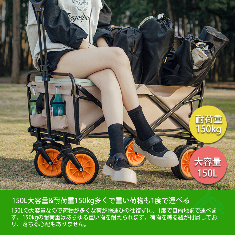アウトドアワゴン 折りたたみ 4輪 ワイドタイヤ 頑丈 耐荷重150kg 大容量 150L 自立式 軽量 コンパクト アウトドアキャリー キャンプ マルチキャリー