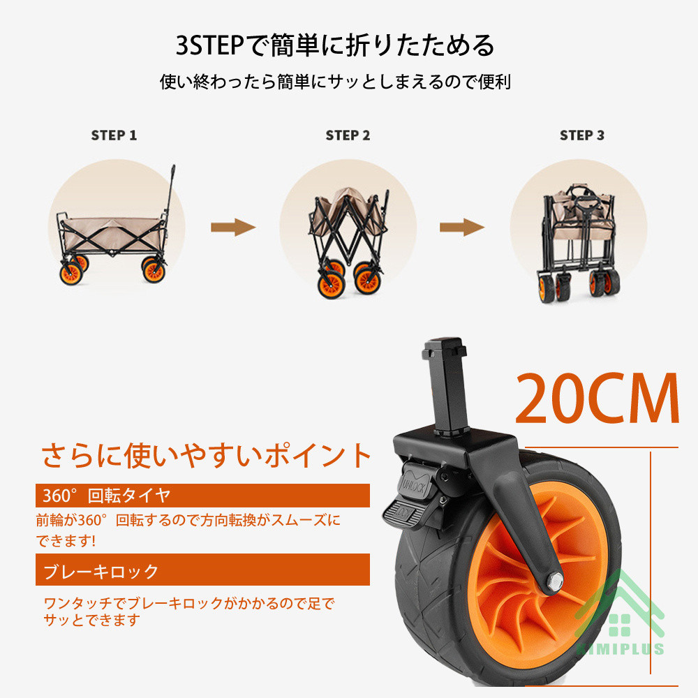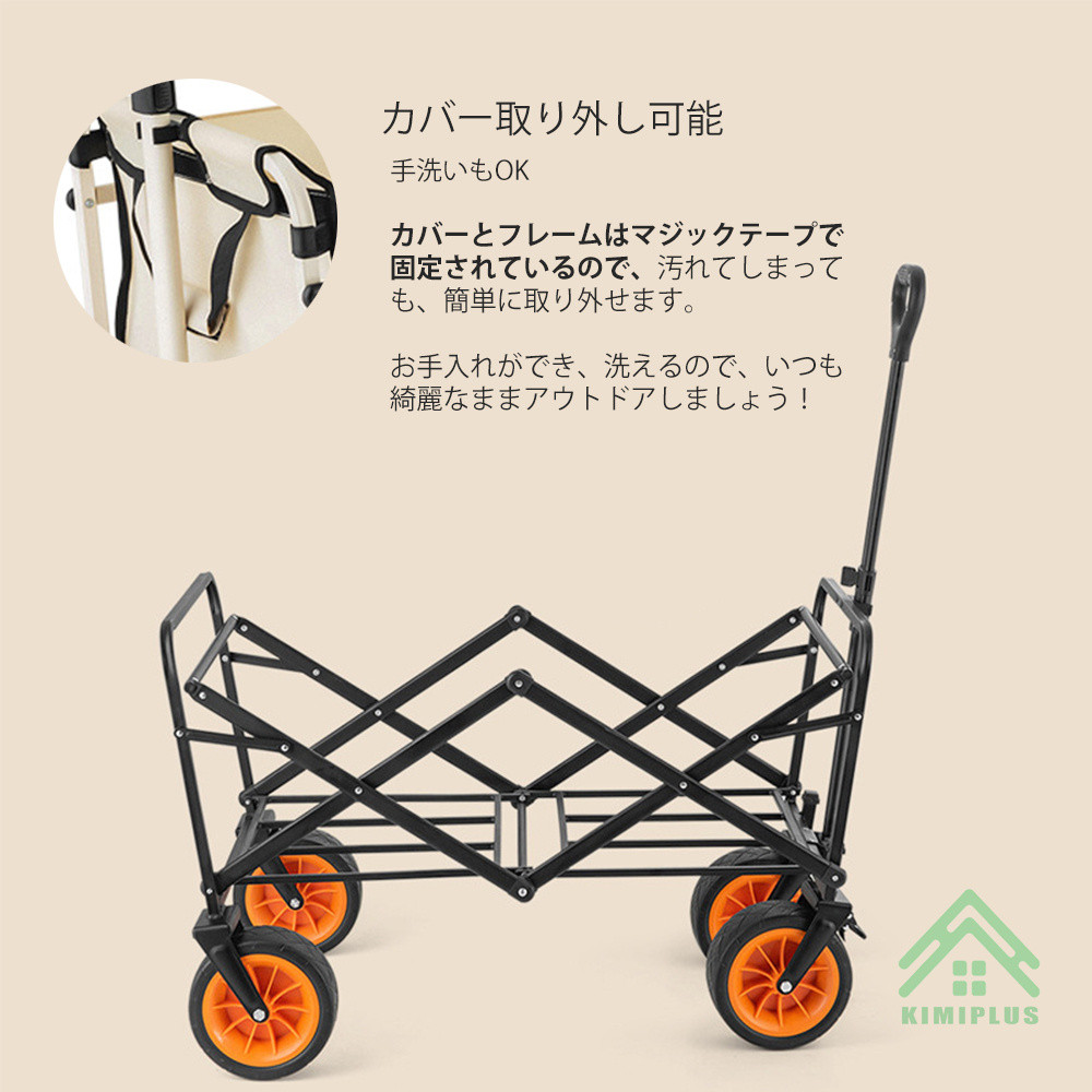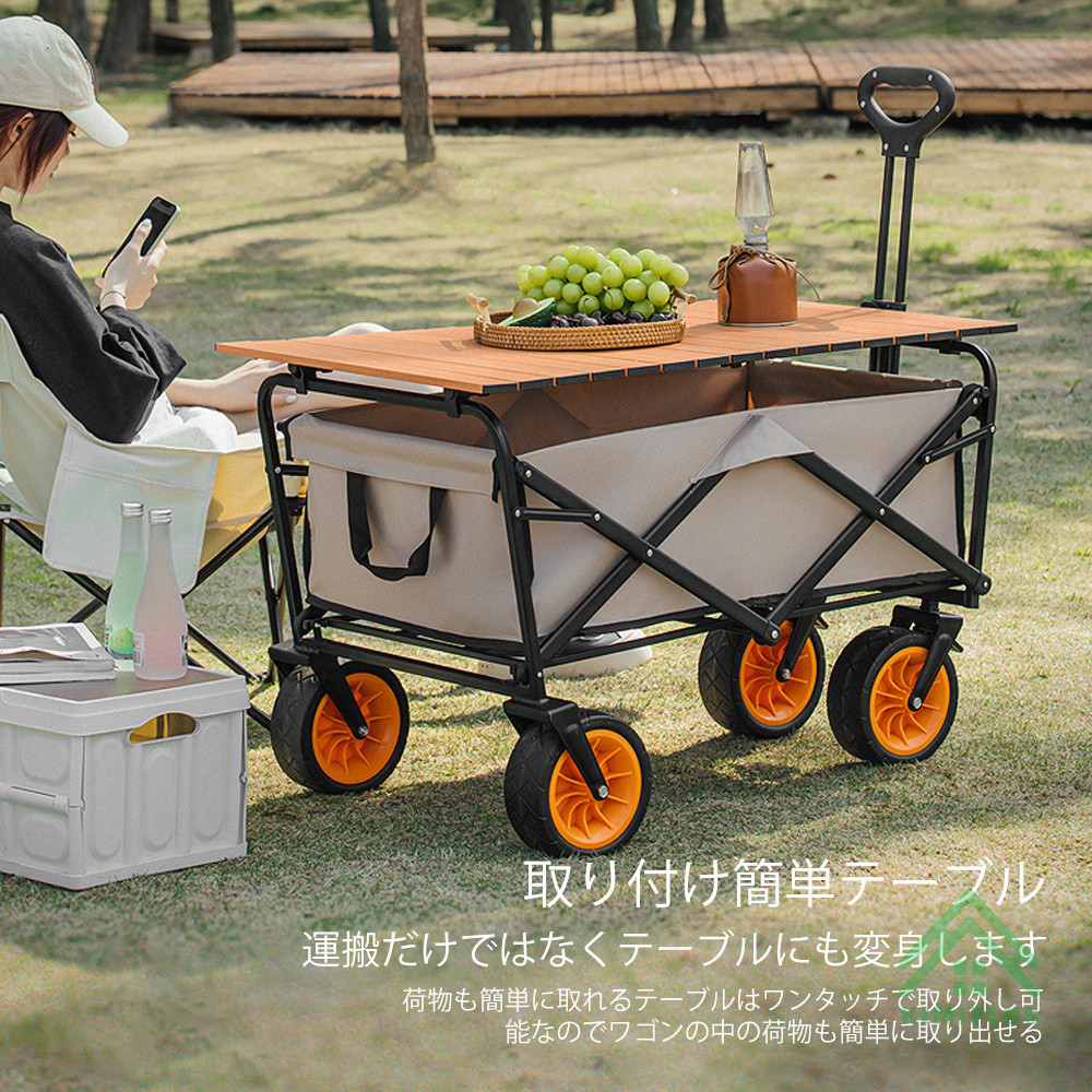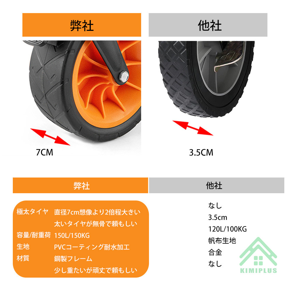 アウトドアワゴン 折りたたみ 4輪 ワイドタイヤ 頑丈 耐荷重150kg 大容量 150L 自立式 軽量 コンパクト アウトドアキャリー キャンプ マルチキャリー
