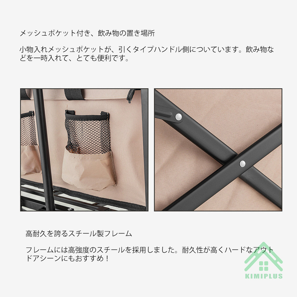 たくさんの荷物を運ぶのはもちろん、簡易テーブルと日避け付き荷物置き場としてもご活用いただけます。